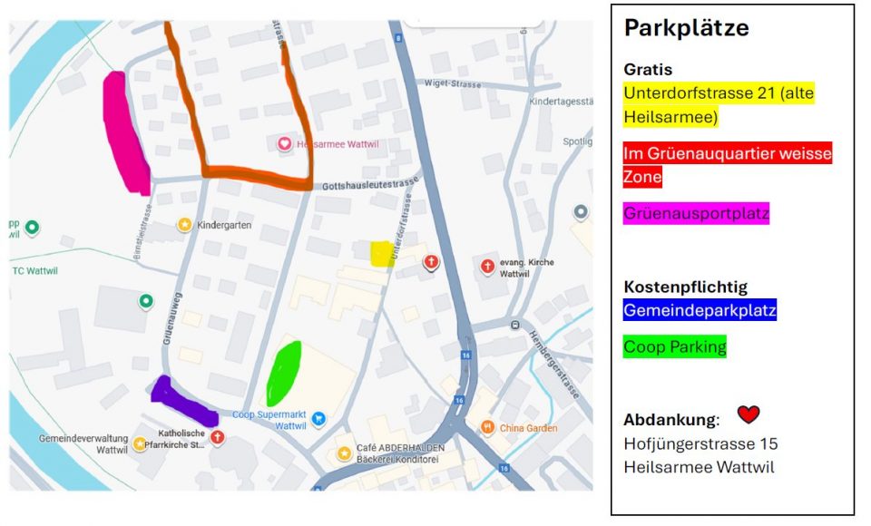 Beim Gemeindeparkplatz und im Coop Parking gibt es zudem kostenpflichtige Parkplätze